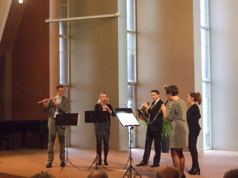 De feestelijke toon was daarmee gezet. Het door Rossini als twaalfjarig wonderkind, oorspronkelijk voor strijkers, gecomponeerde kwartet klonk als bewerking voor blazers in de geweldige uitvoering door deze vijf professionals kleurrijker dan in de oorspronkelijke versie. De daarop volgende vier delen uit de Music for The Royal Fireworks waren voor de bezoekers zeker een feest der herkenning. Ook al werd dit bekende werk van Händel niet gespeeld door het leger van blazers dat ooit in Londen de eerste uitvoering ervan verzorgde. De Czardas van Monti klonk heel goed en meeslepend in de versie die het kwintet ervan, als laatste nummer voor de pauze, speelde.